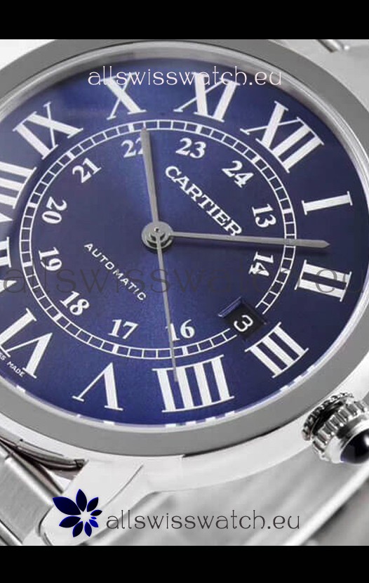 Ronde De Cartier Swiss Replica Watch - Stainless Steel Casing in Blue Dial