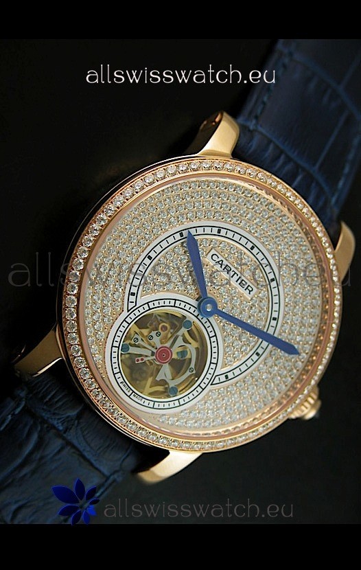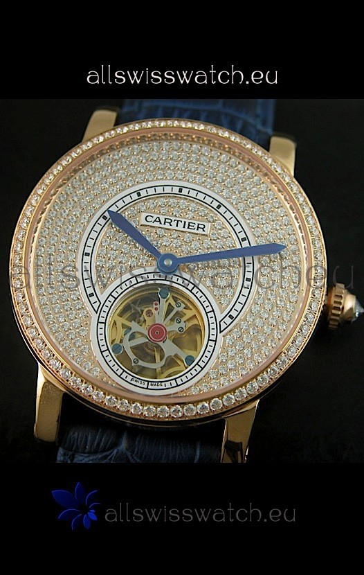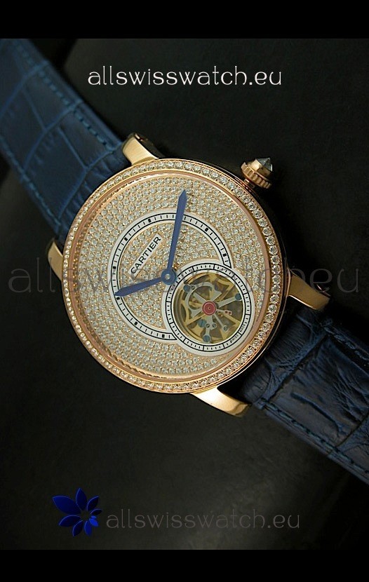 Ronde De Cartier Tourbillon Replica Watch Pink Gold Case - Purple Strap