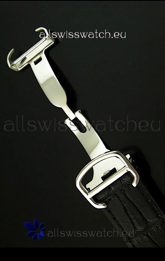 Genuine Black Leather Strap equipped with Folding Clasp and Cartier Markings/Engravings