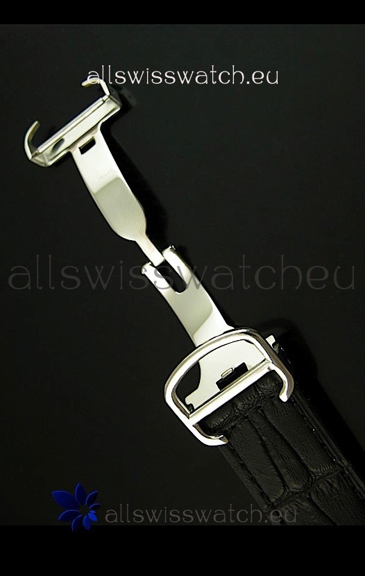 Genuine Black Leather Strap equipped with Folding Clasp and Cartier Markings/Engravings