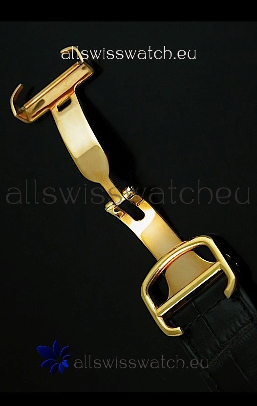 Genuine Black Leather Strap equipped with Folding Clasp and Cartier Markings/Engravings