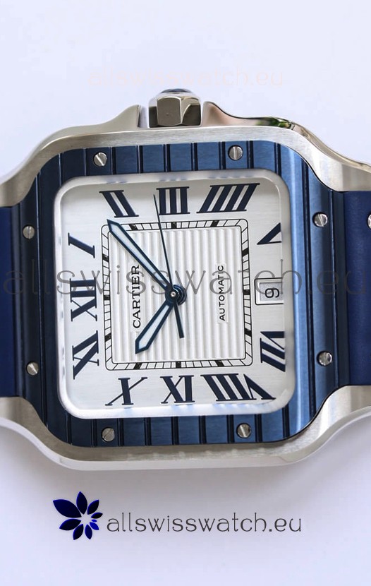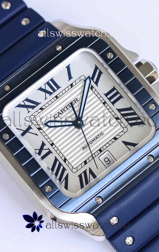 Santos De Cartier 1:1 Blue DLC Bezel Swiss Replica Watch 40MM - Rubber Strap