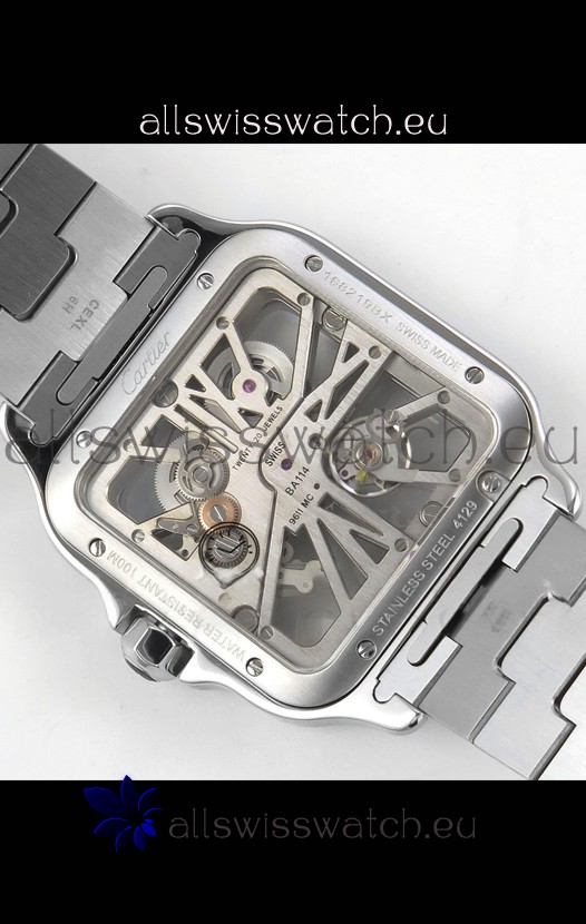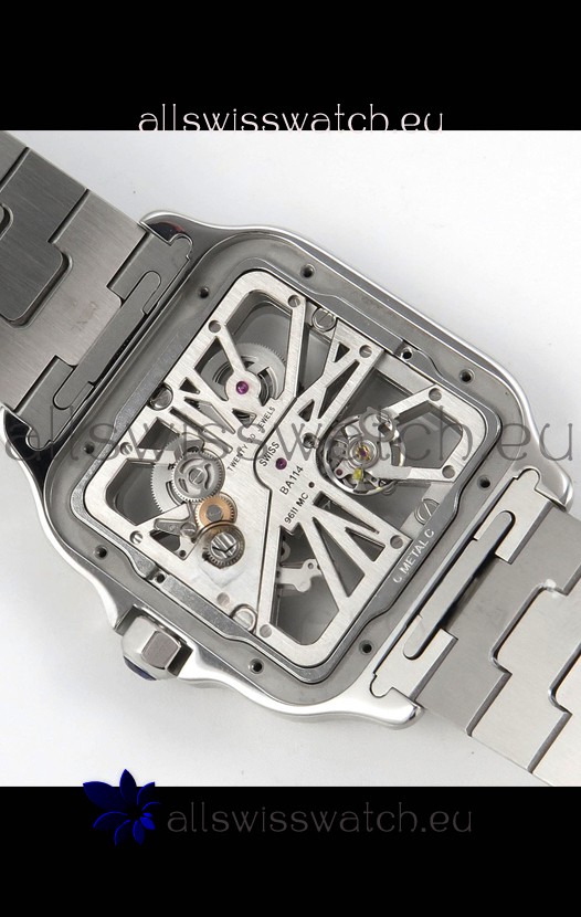 Santos De Cartier Super Clone Watch in Skeleton Dial Stainless Steel Case
