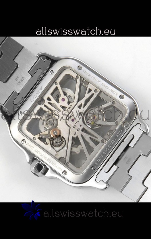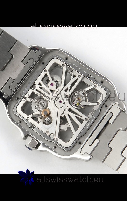 Santos De Cartier Super Clone Watch in Skeleton Dial Stainless Steel Case