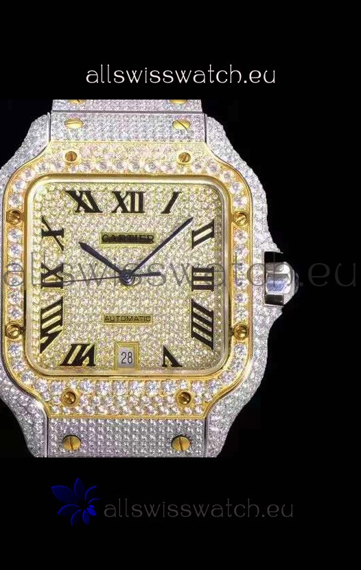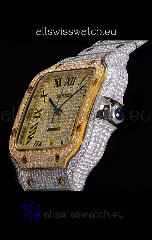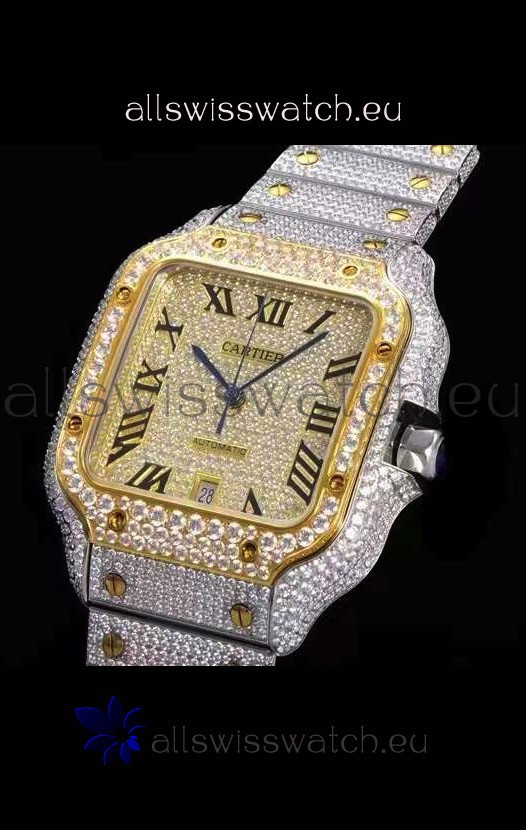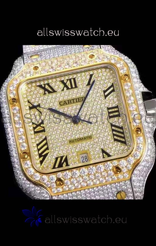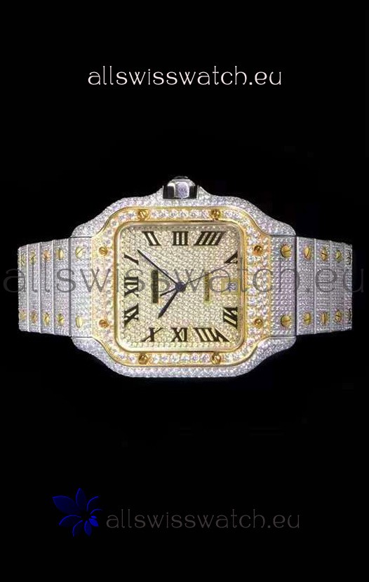 Santos De Cartier Swiss Replica Watch with Diamonds Embedded Dial in Two Tone Casing 40MM