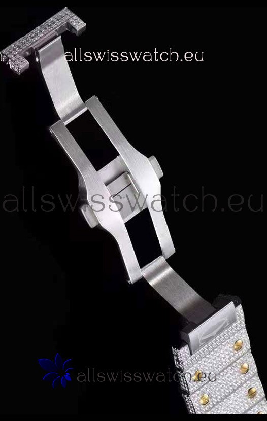 Diamonds Emedded Stainless Steel Strap with Folding Clasps complete with Cartier Markings and Engravings