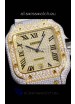 Diamonds Embedded Stainless Steel Casing with complete with Cartier Markings as per the Originals