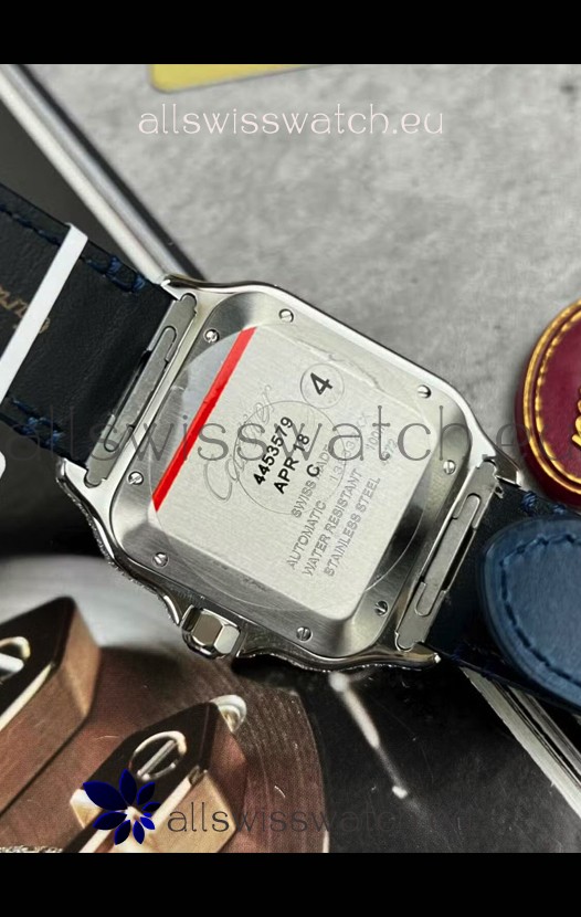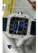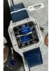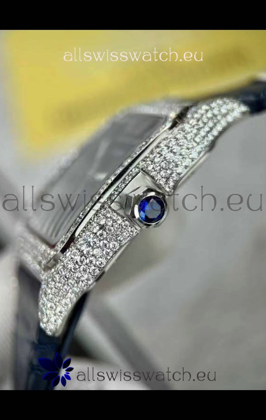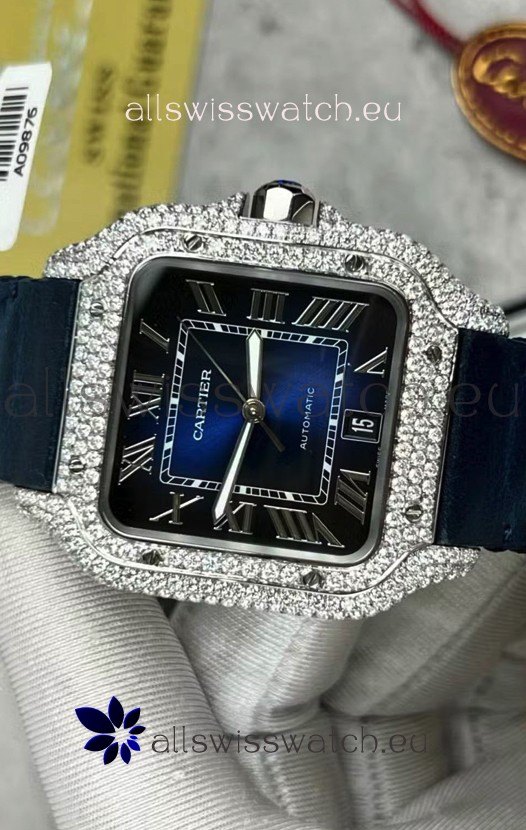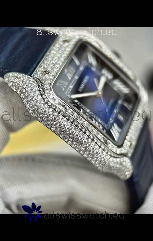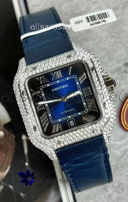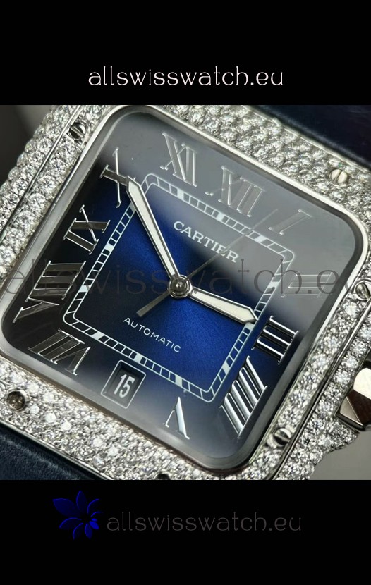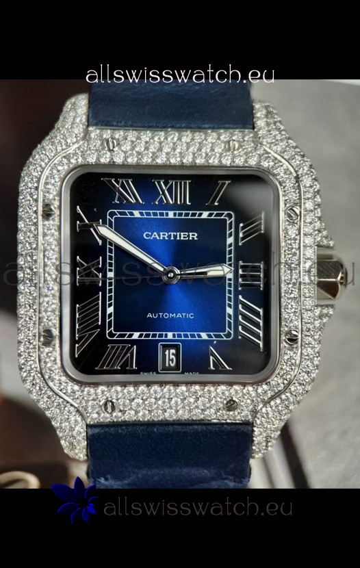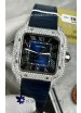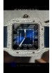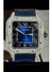Santos De Cartier Watch in Blue Dial 39.50MM MOSSANITES Paved Bezel Swiss Replica Watch