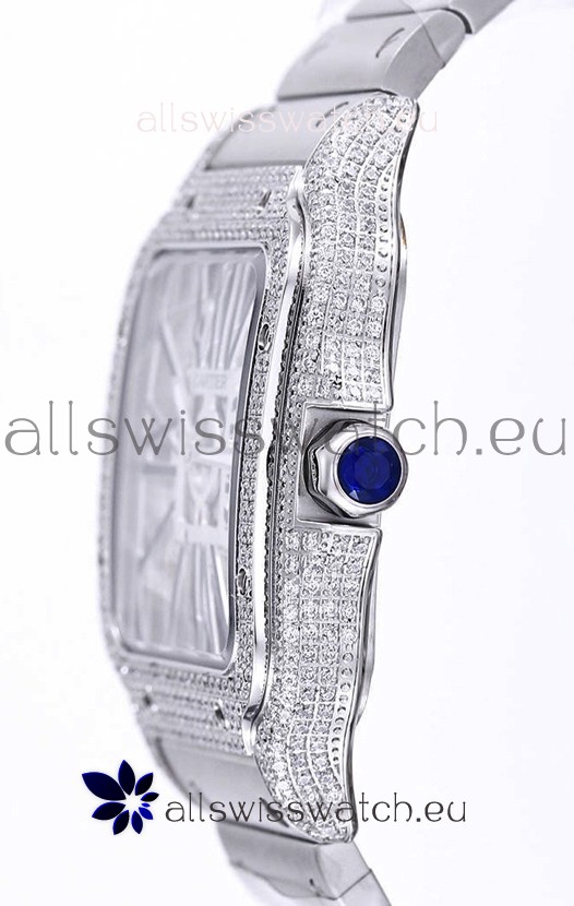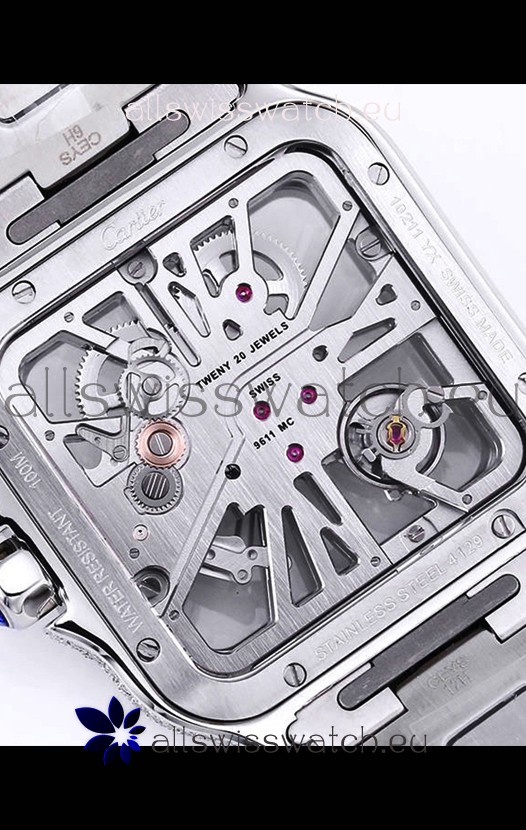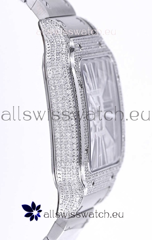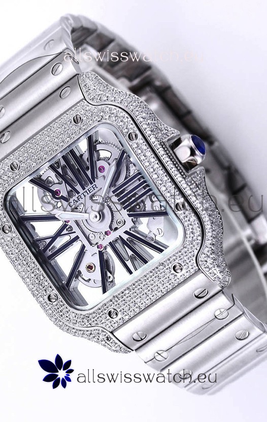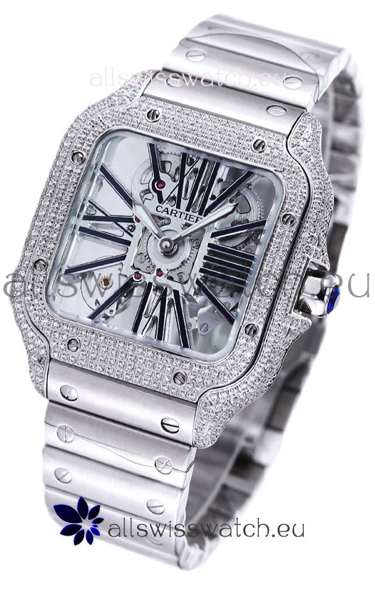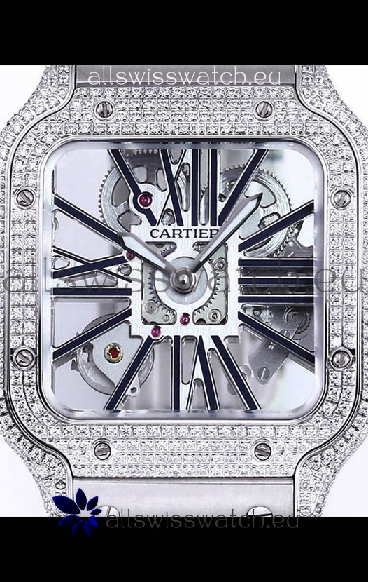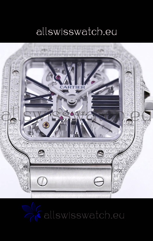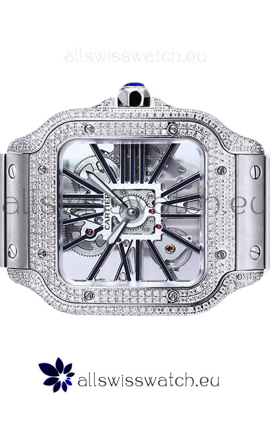 Santos De Cartier Watch in Skeleton Dial - Diamonds Bezel in Steel Casing Swiss Replica