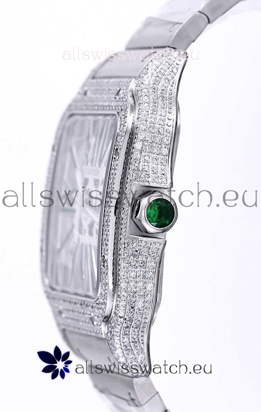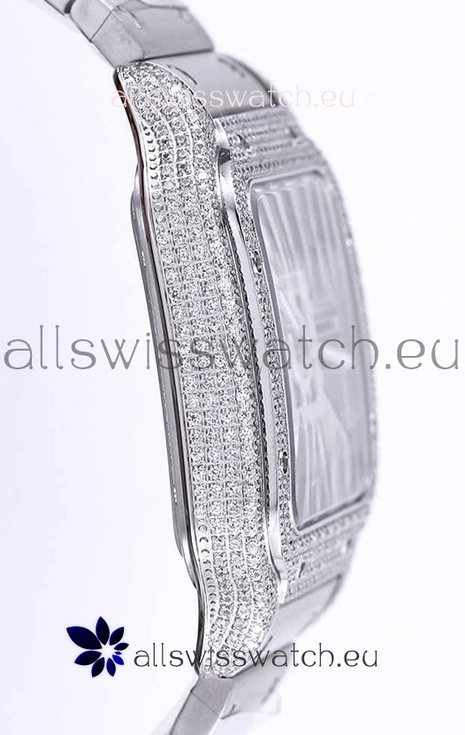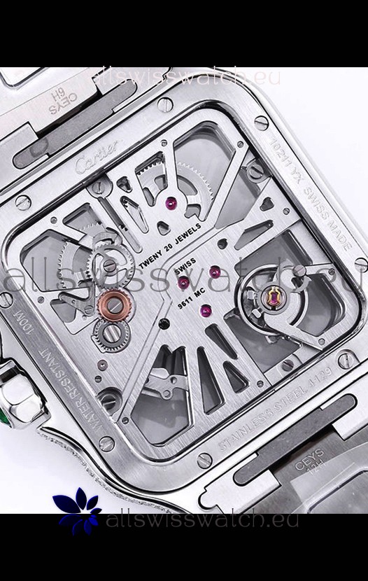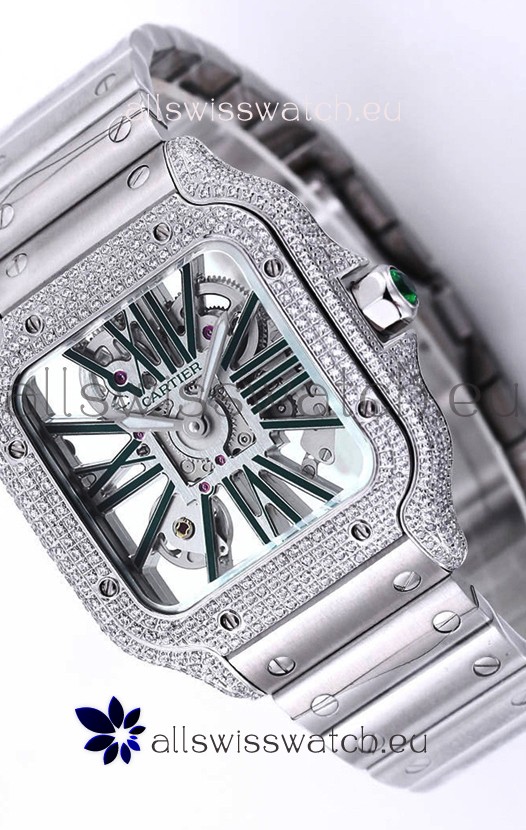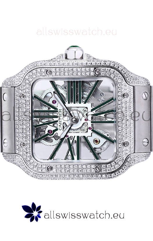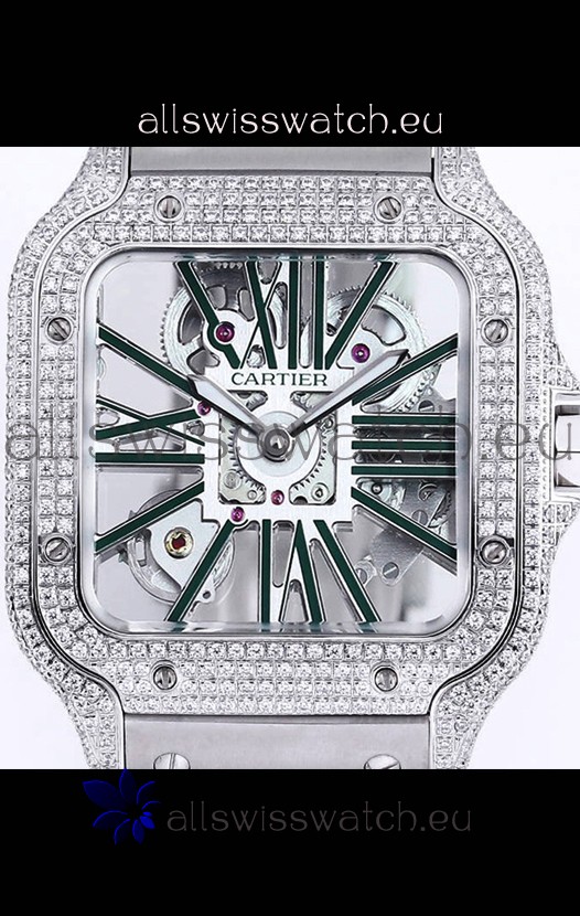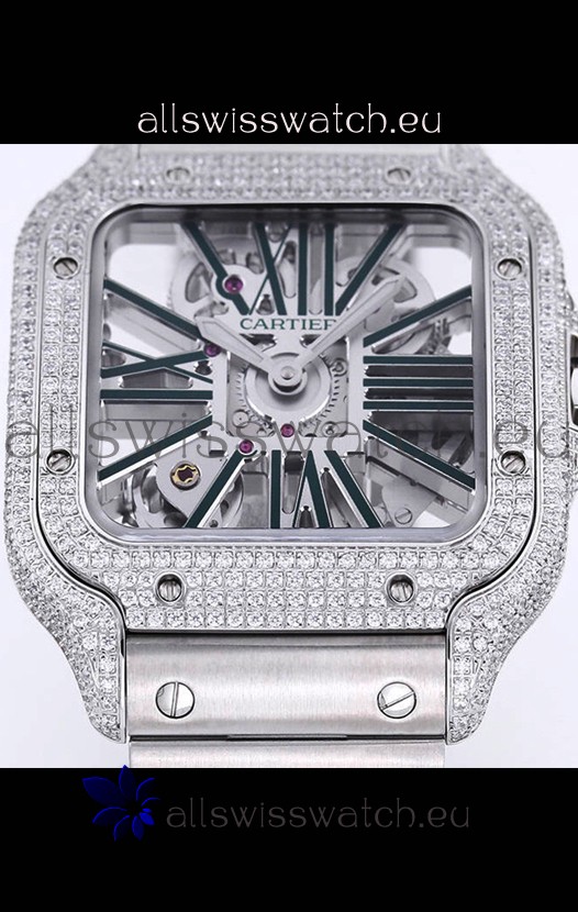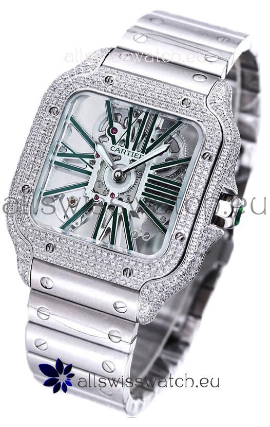 Santos De Cartier Watch in Skeleton Dial - Diamonds Bezel in Steel Casing Swiss Replica