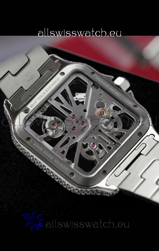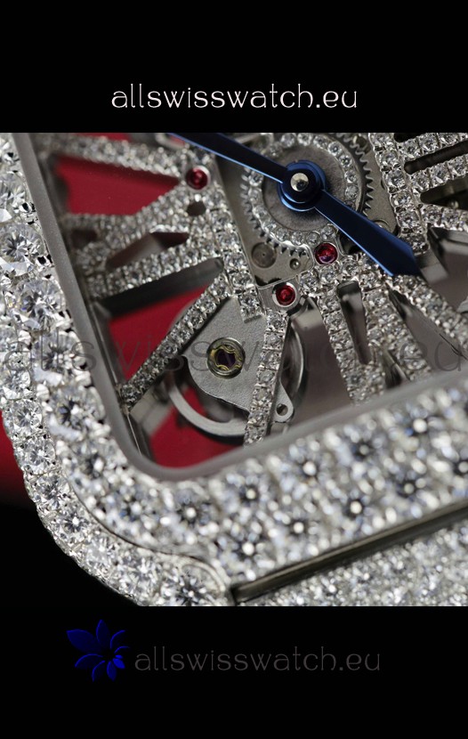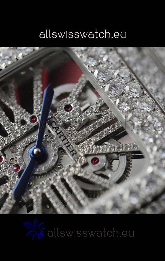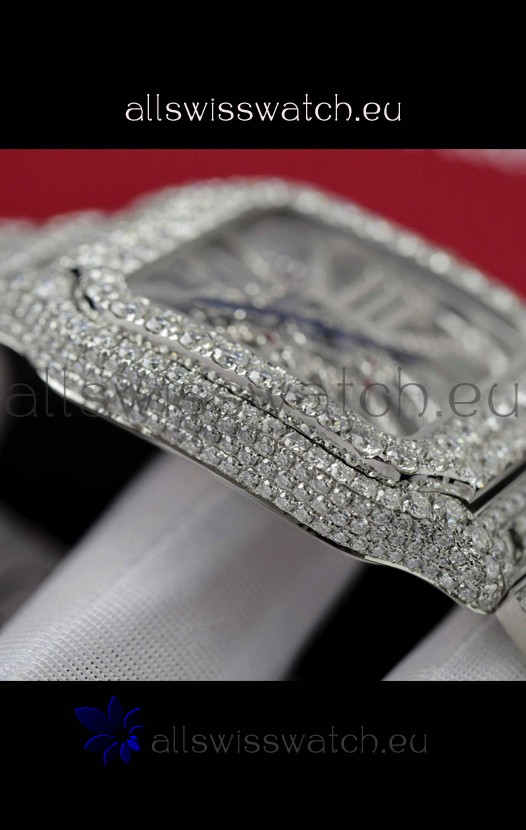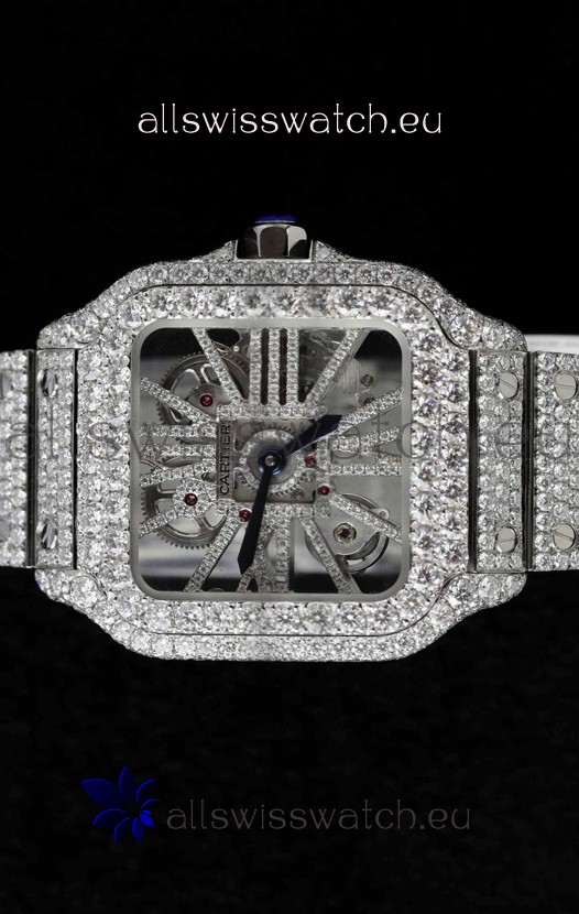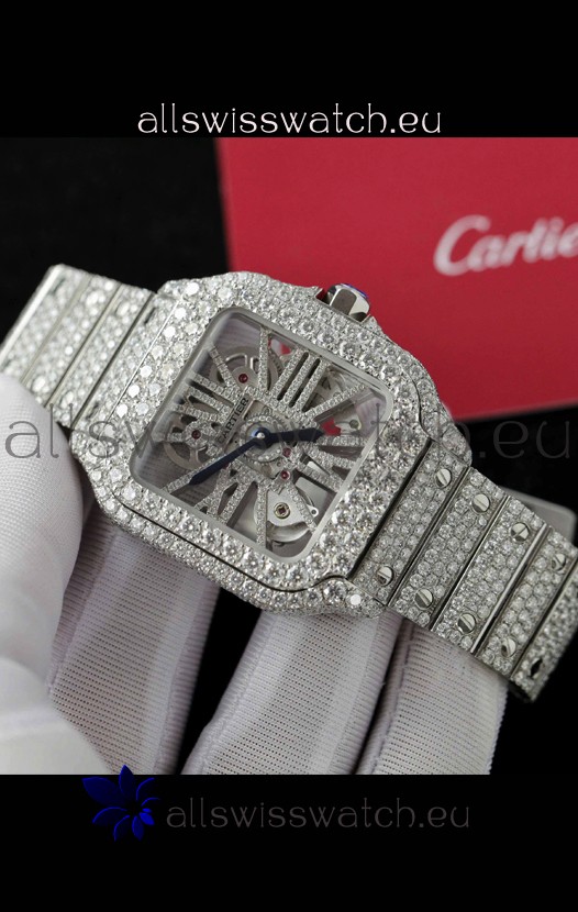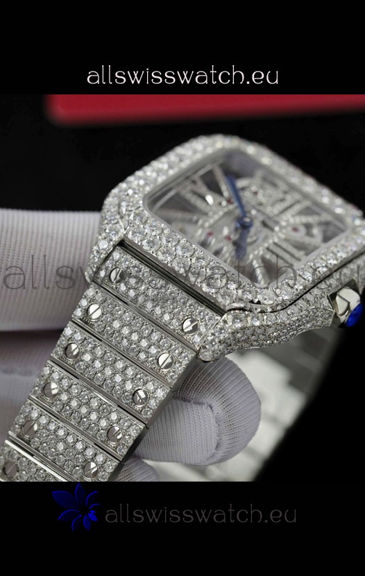 Santos De Cartier Watch in Skeleton Dial - MOSSANITES Paved Edition Swiss Replica Watch
