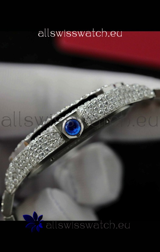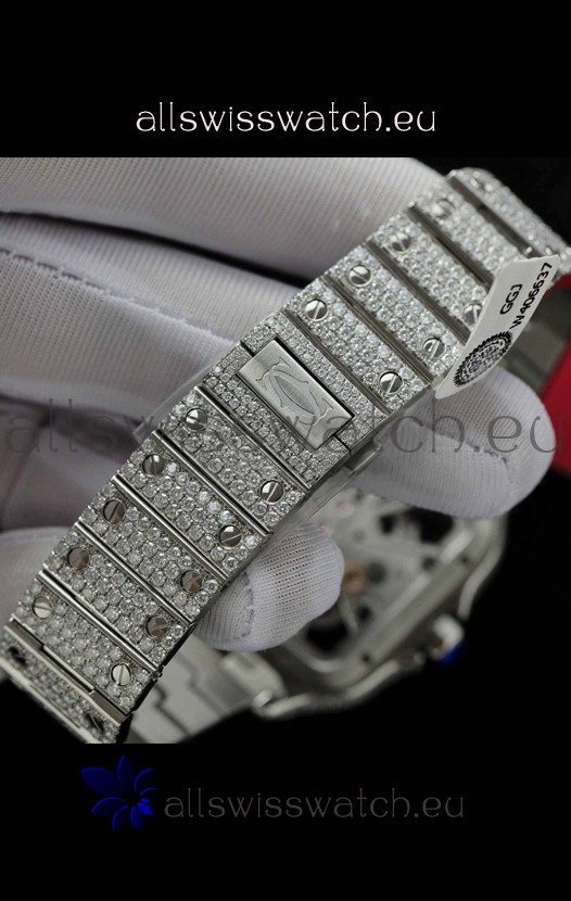 Mossanite Paved 904L Stainless Steel Strap with Cartier Deployant Buckle complete with Cartier Markings and Engravings