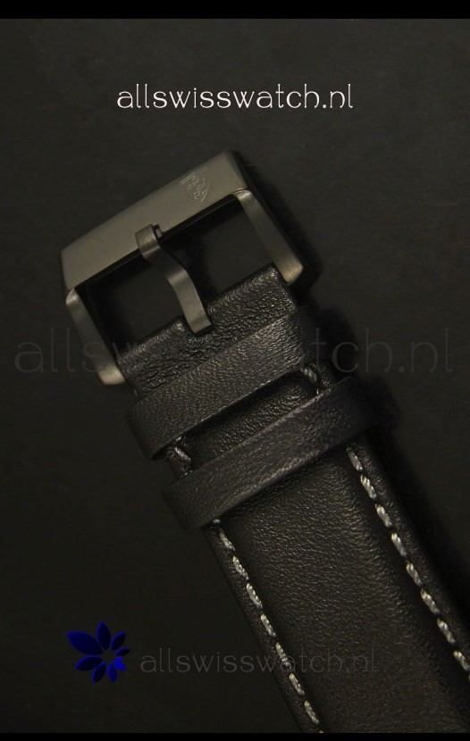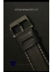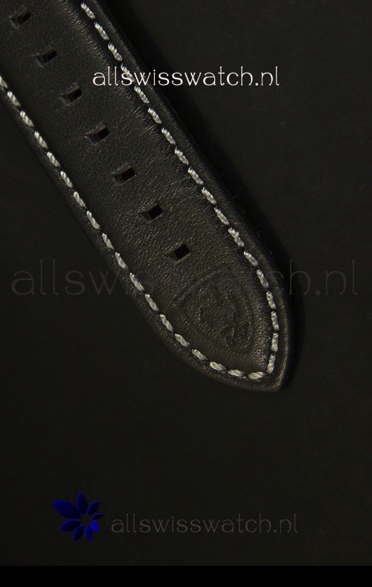 Genuine Racing Style Leather Strap with White Trims and PVD Coated Stainless Steel Tang Buckle