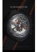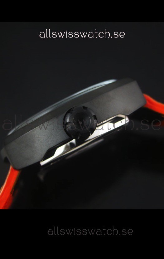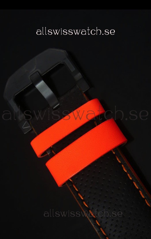 Black Sports Leather Strap with Orange Stitches and Tang Buckle