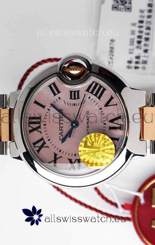 Ballon De Cartier Swiss Automatic 1:1 Mirror Quality 33MM in 2 Tone Rose Gold Casing Pink Dial