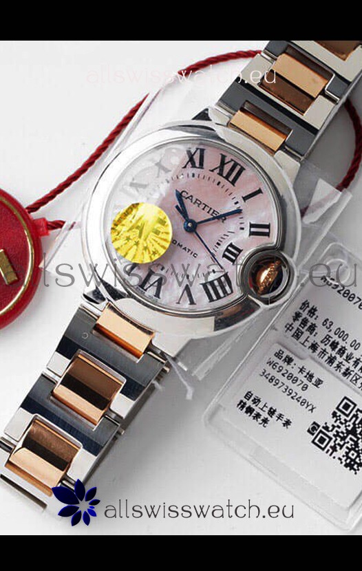 You're reviewing: Ballon De Cartier Swiss Automatic 1:1 Mirror Quality 33MM in 2 Tone Rose Gold Casing Pink Dial