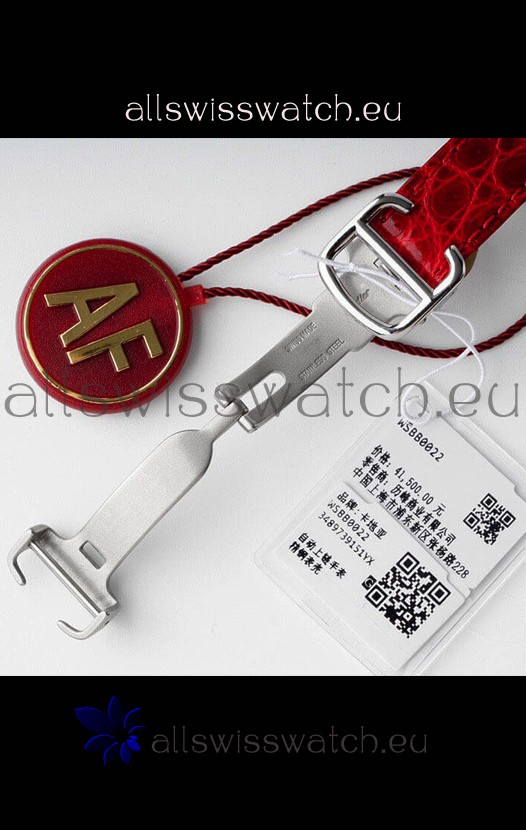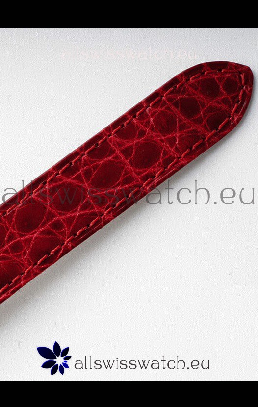 Genuine Red Leather Strap with Cartier Markings/Engravings and Double Folding Clasp