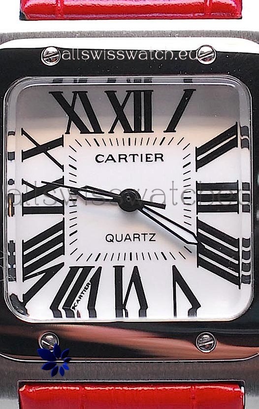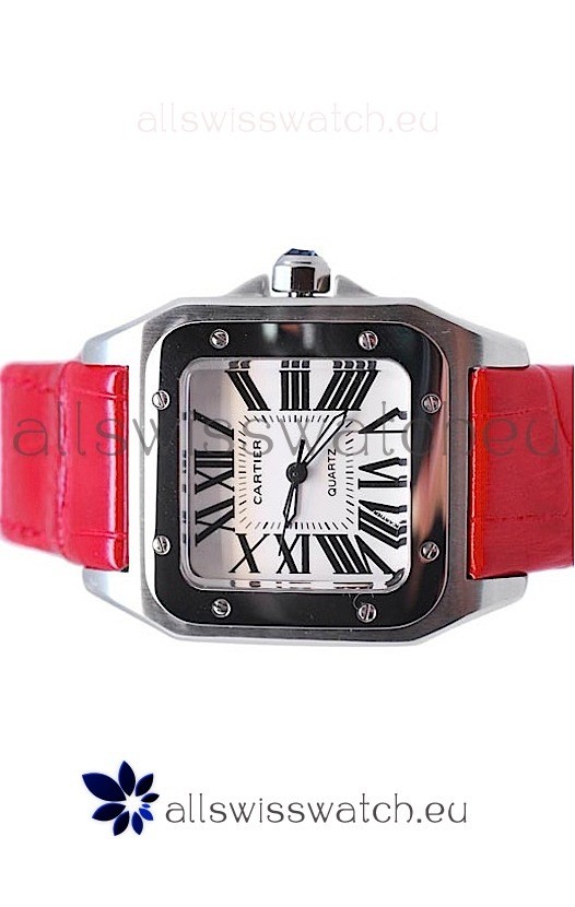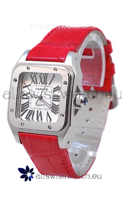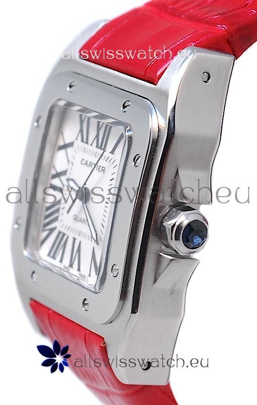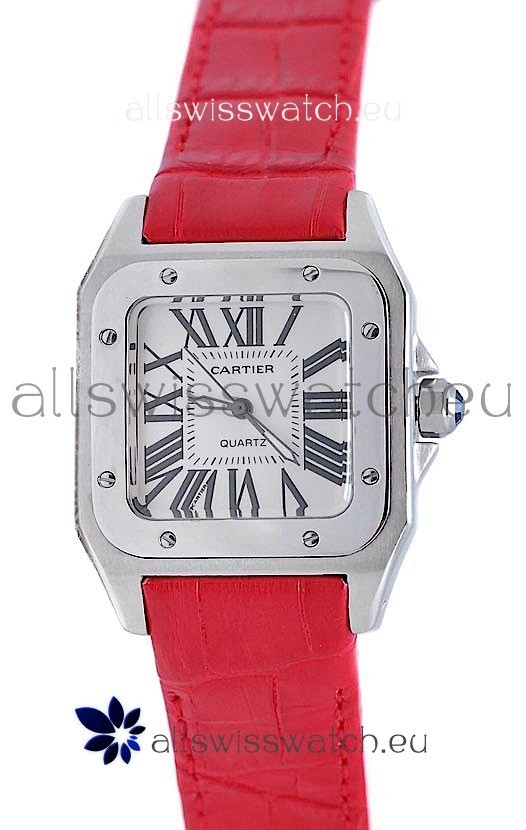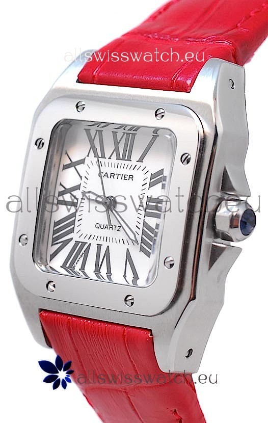 Watch name: Cartier Santos 100 Japanese Ladies Replica Watch in Red Strap