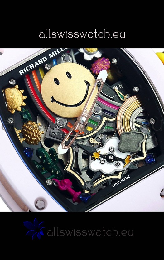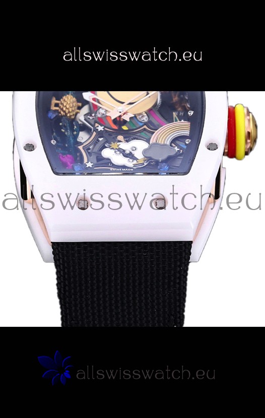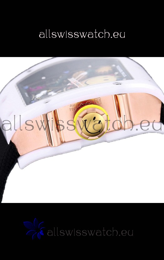 Richard Mille RM088 Smiley Tourbillon White Ceramic Casing Nylon Strap Replica Watch