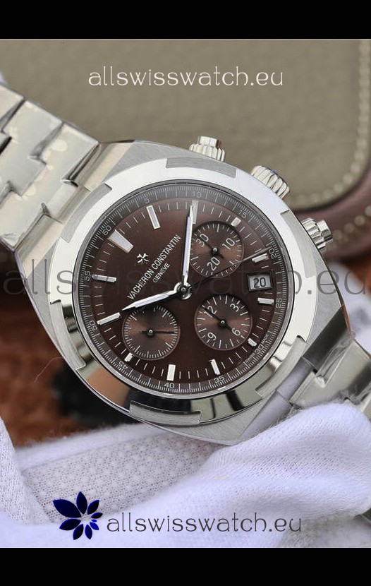 Vacheron Constantin Overseas Chronograph Brown Dial Swiss Replica Watch - Stainless Steel Strap