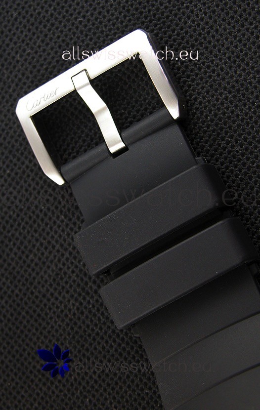 Genuine Rubber Strap with Double Folding Clasp stamped with Cartier Markings and Engravings exactly like the Authentic