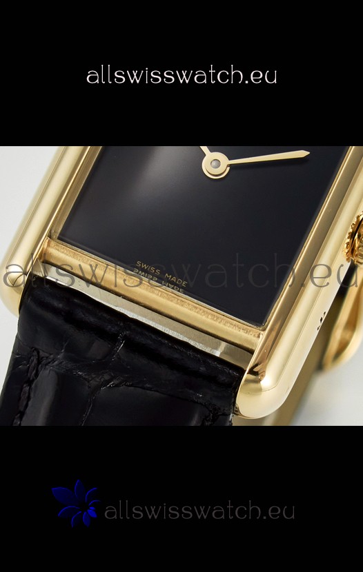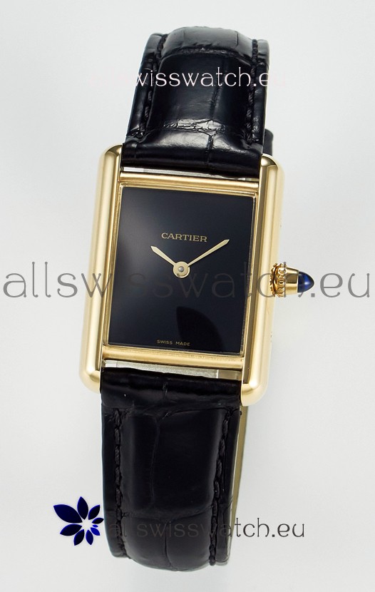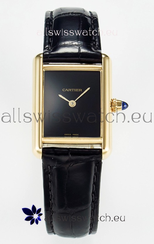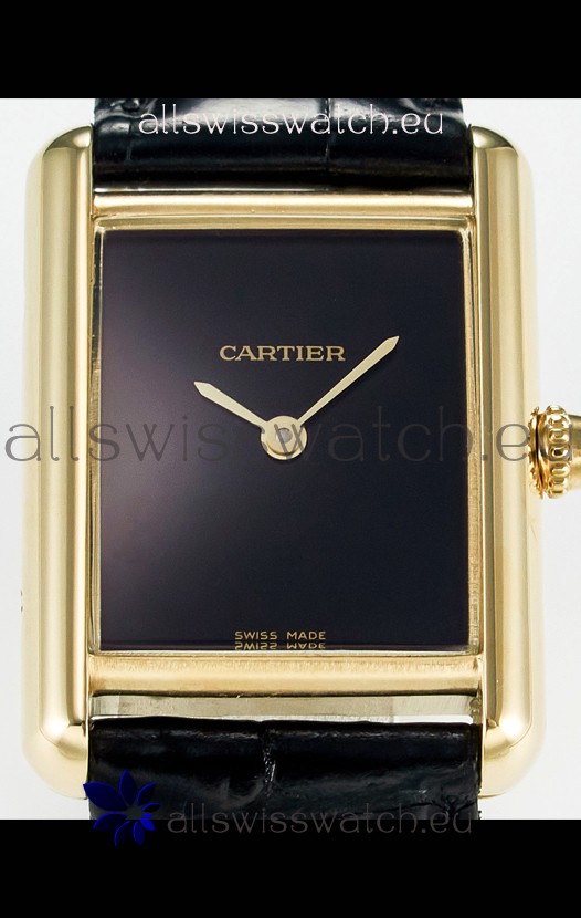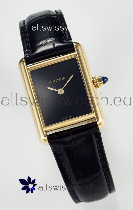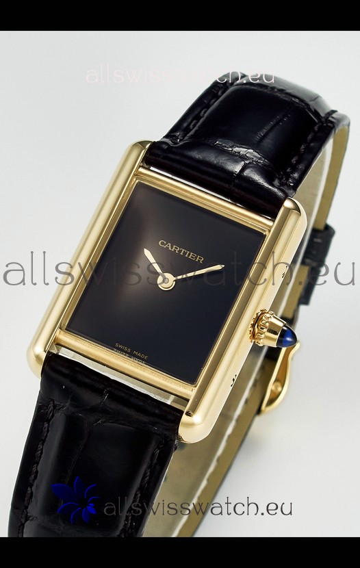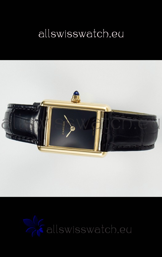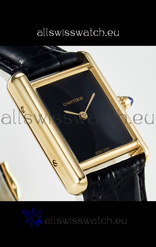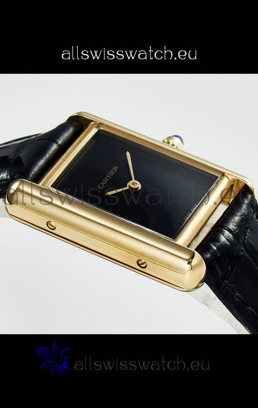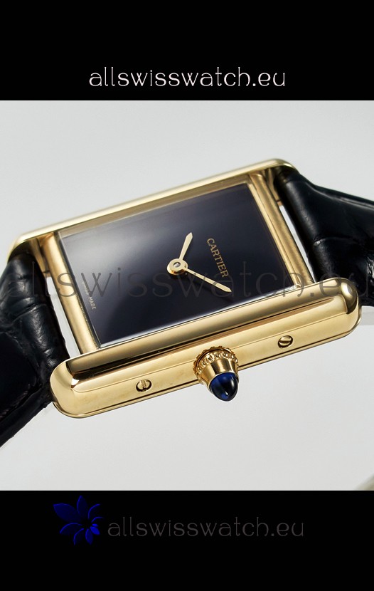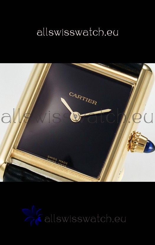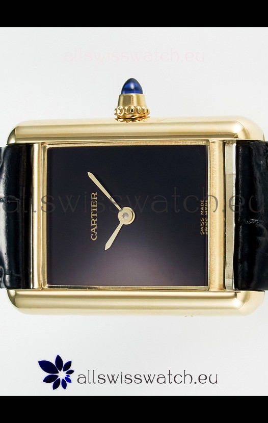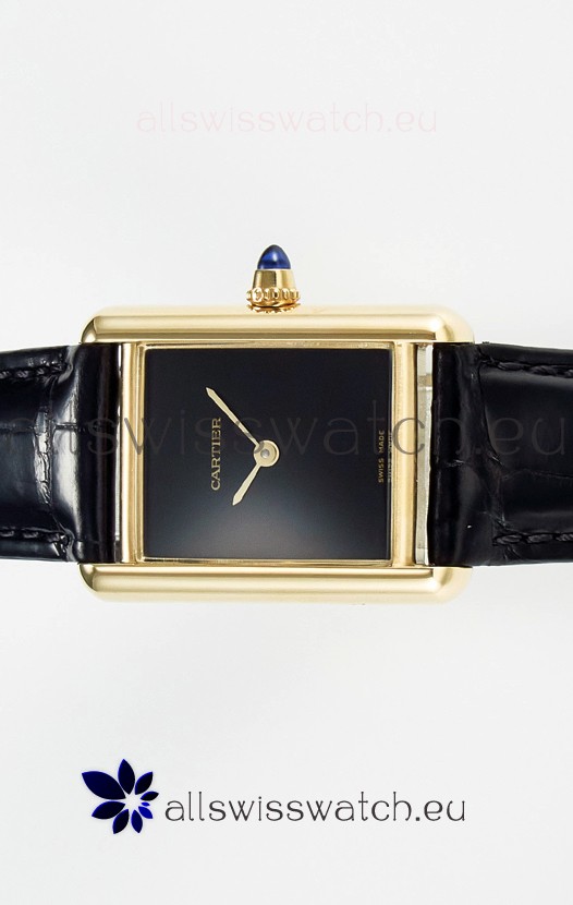 Tank Must Cartier Super Clone Edition 29MM Watch in Yellow Gold Casing Black Dial