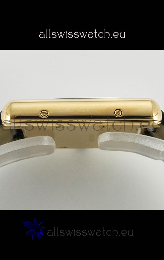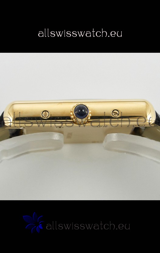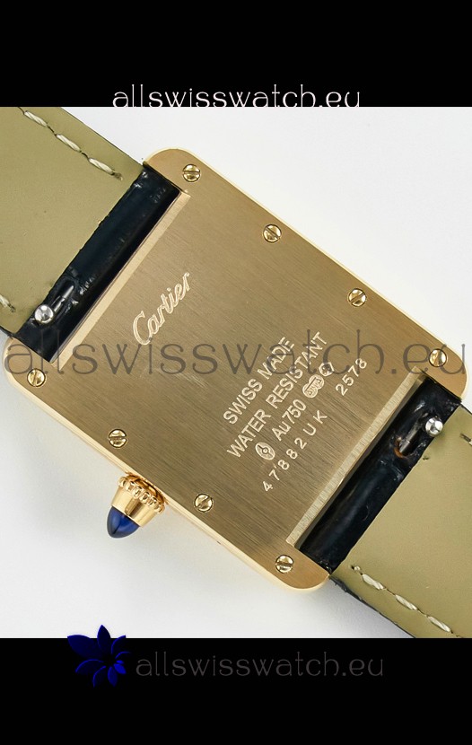 18K Yellow Gold Plating on Stainless Steel Case with solid Case back complete with Cartier Markings and Engravings