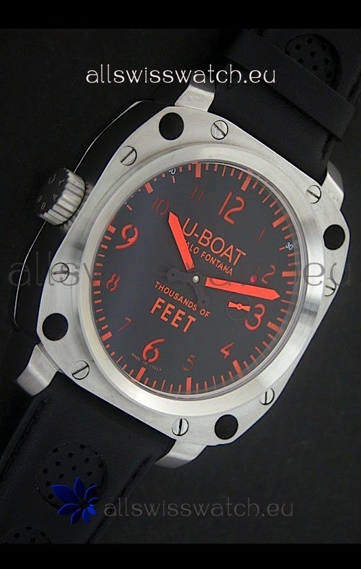 Watch name: U-Boat Thousands of Feet Swiss Steel Automatic Watch in Red Markers