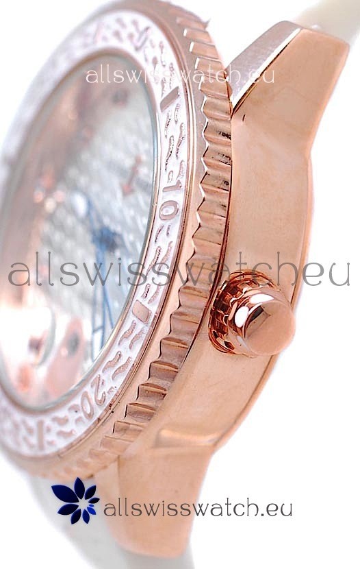 Other Feartures: Pink Gold plated Bezel and Scratch Proof Sapphire Crystal with Double Layer Anti Reflective Coating