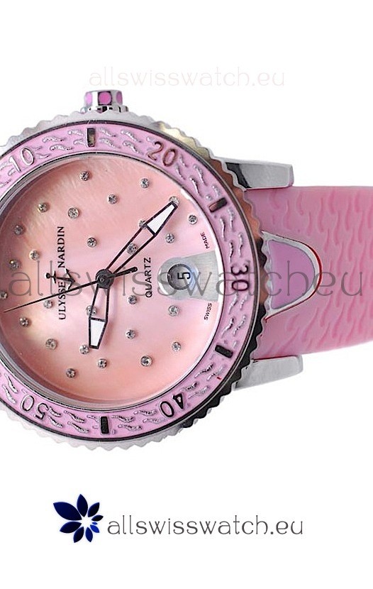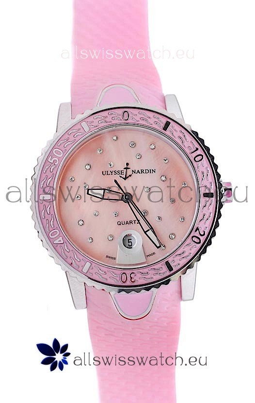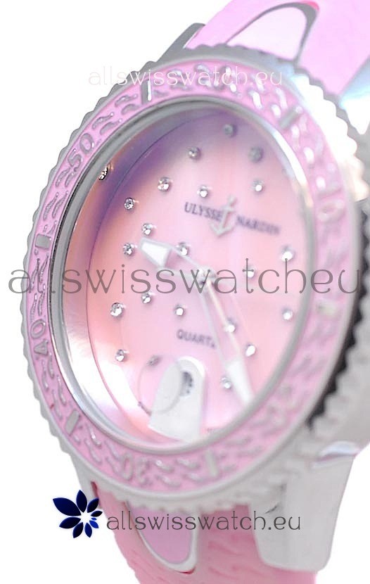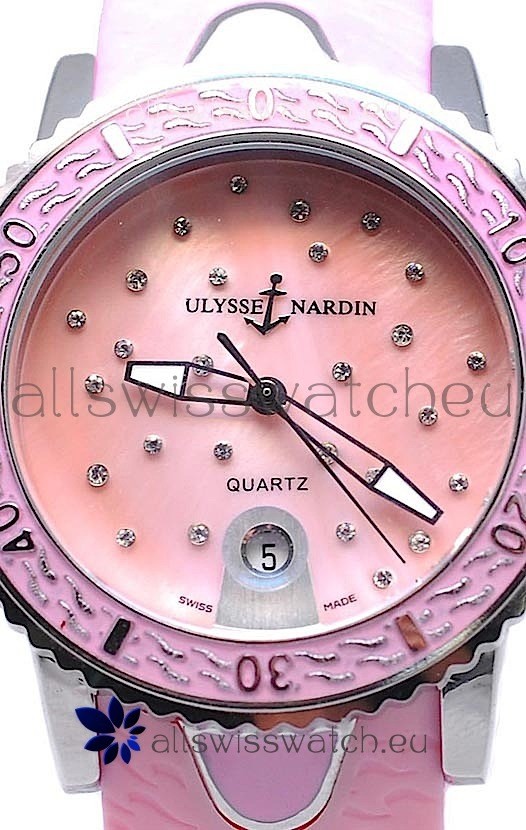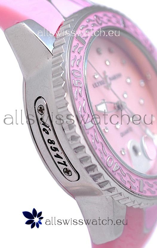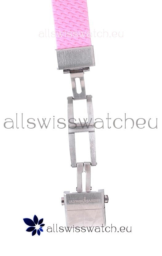 Strap: Genuine Pink Rubber Strap with Ulysse Nardin Markings and Engravings