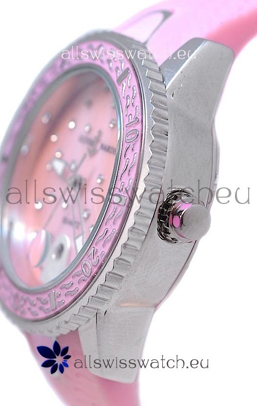 Other Feartures: Pink Stainless Steel Bezel and Scratch Proof Sapphire Crystal with Double Layer Anti Reflective Coating