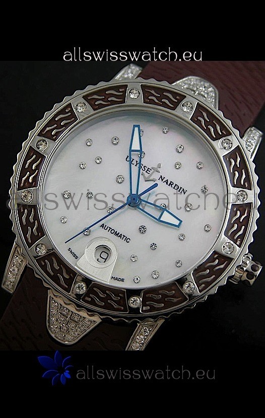 Watch name: Ulysse Nardin Lady Diver White Starry Night Swiss Automatic Watch in Brown Strap