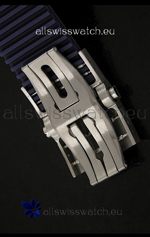 Strap: Special Dark Blue Rubber Strap with Wave Pattern and Deployant Clasp