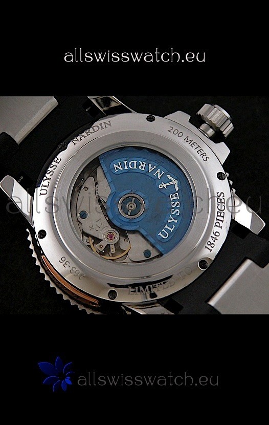 Strap: Genuine Rubber Strap with Ulysse Nardin Markings and Engravings Exactly Like the Authentics