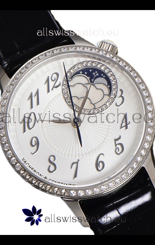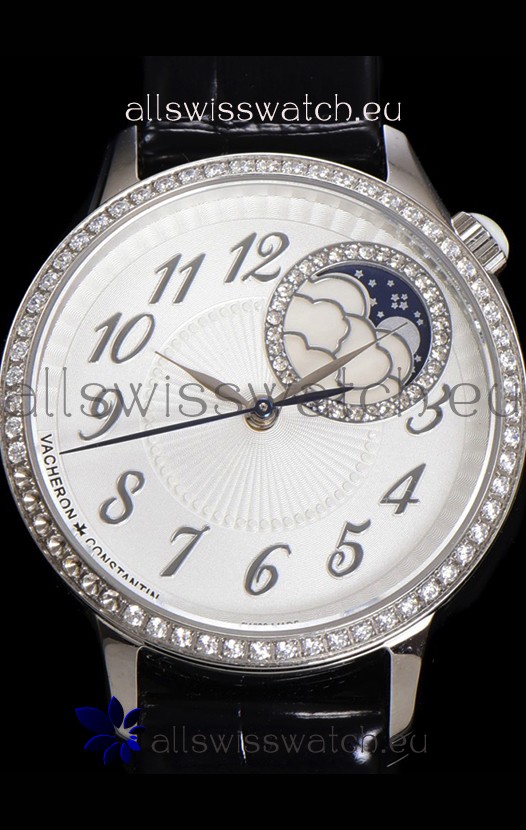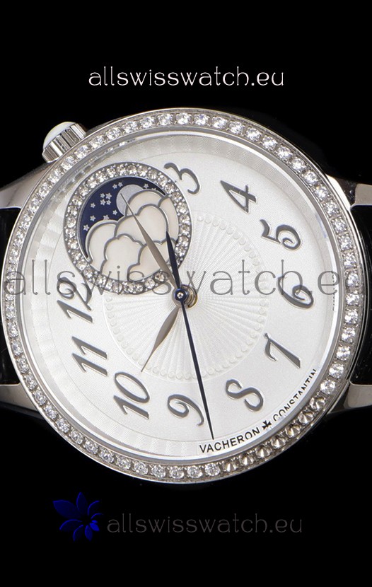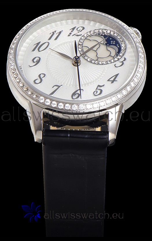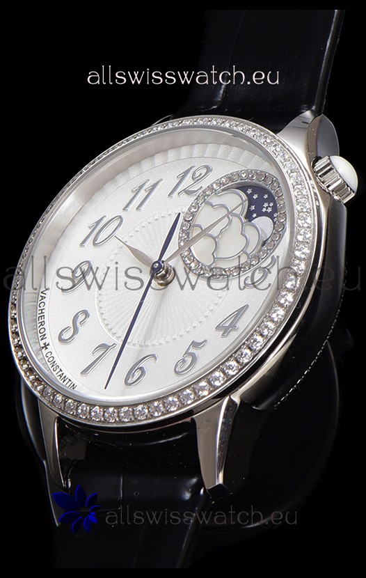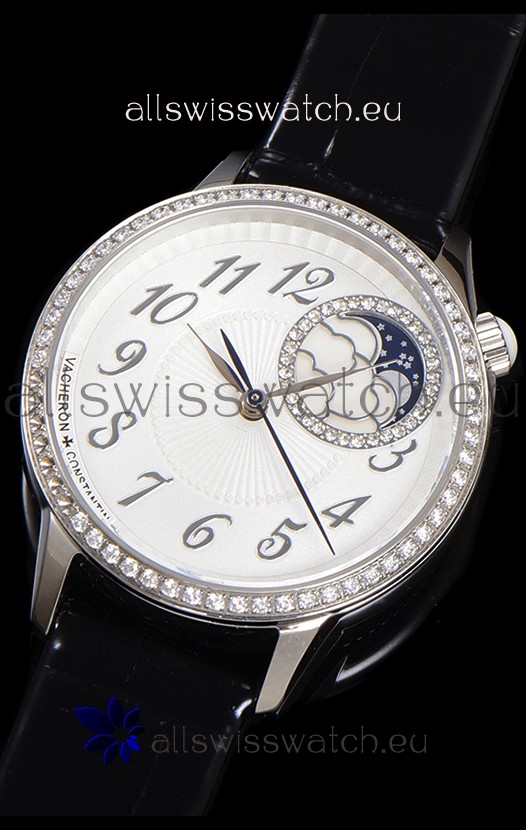 Vacheron Constantin Egerie Muse Moonphase 904L Steel Casing in White Dial Swiss Replica Watch