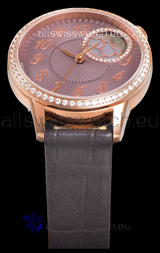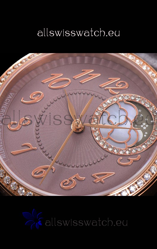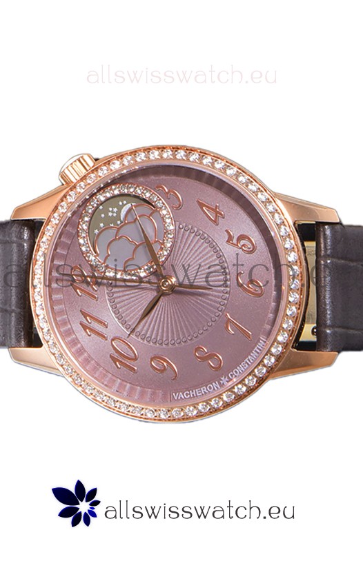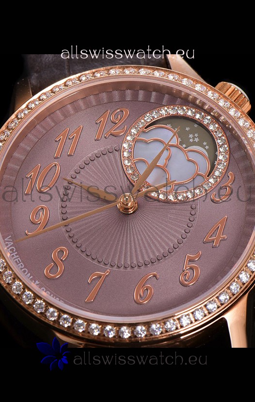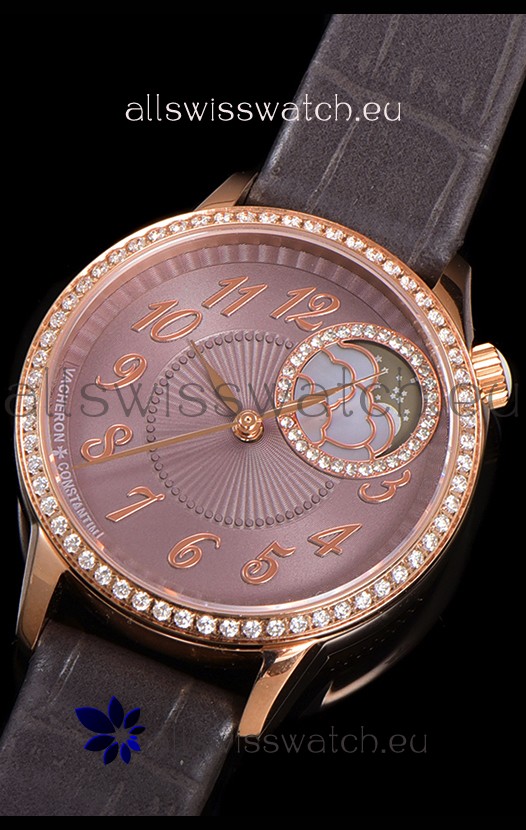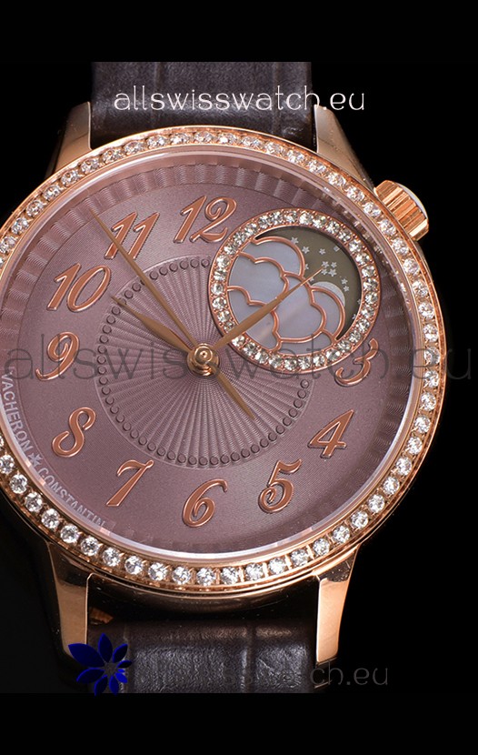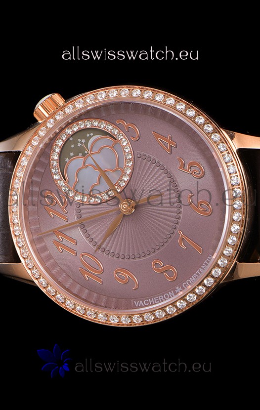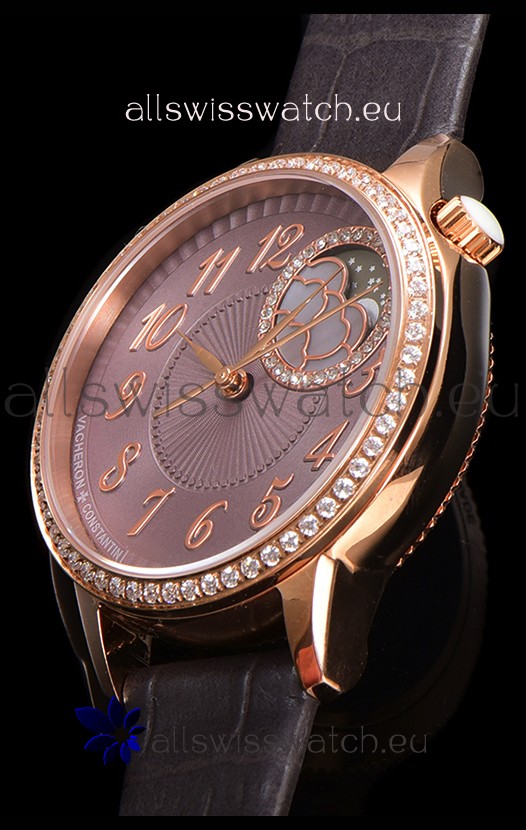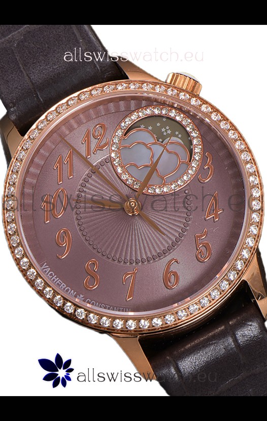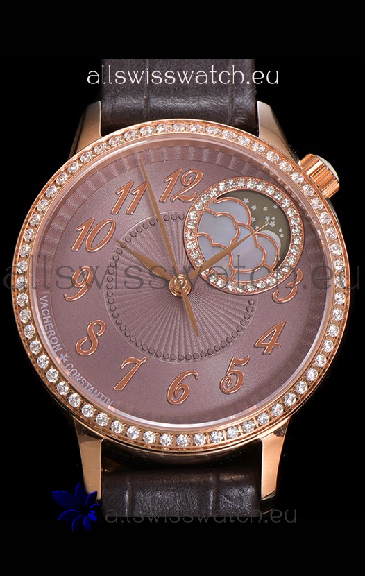 Vacheron Constantin Egerie Muse Moonphase Rose Gold Casing in Brown Dial Swiss Replica