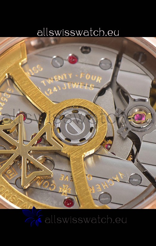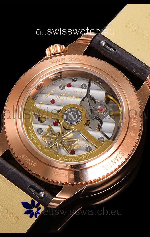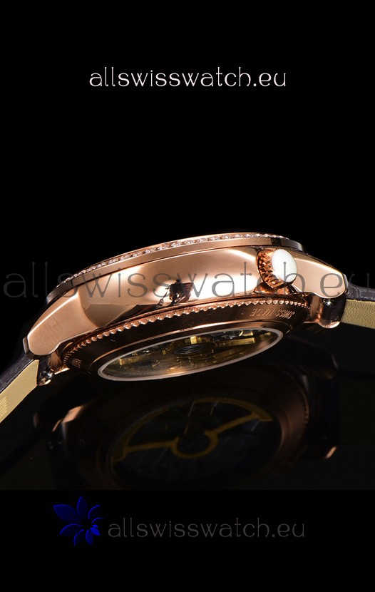 18K Rose Gold Plating on 904L Solid Stainless Steel Casing complete with Vacheron Constantin Markings and Engravings. High Quality Diamonds Bezel