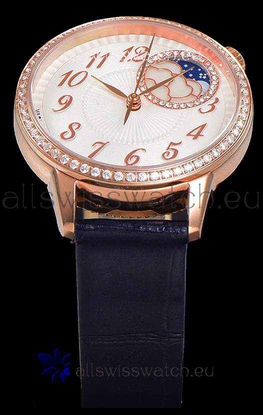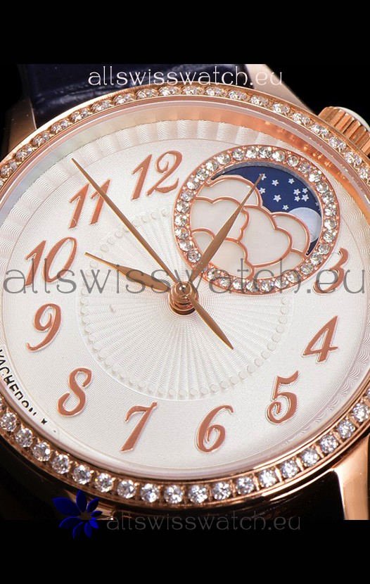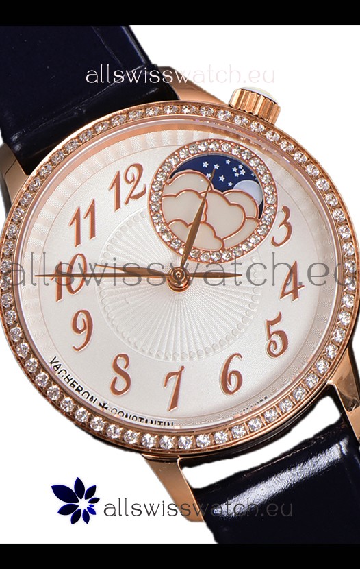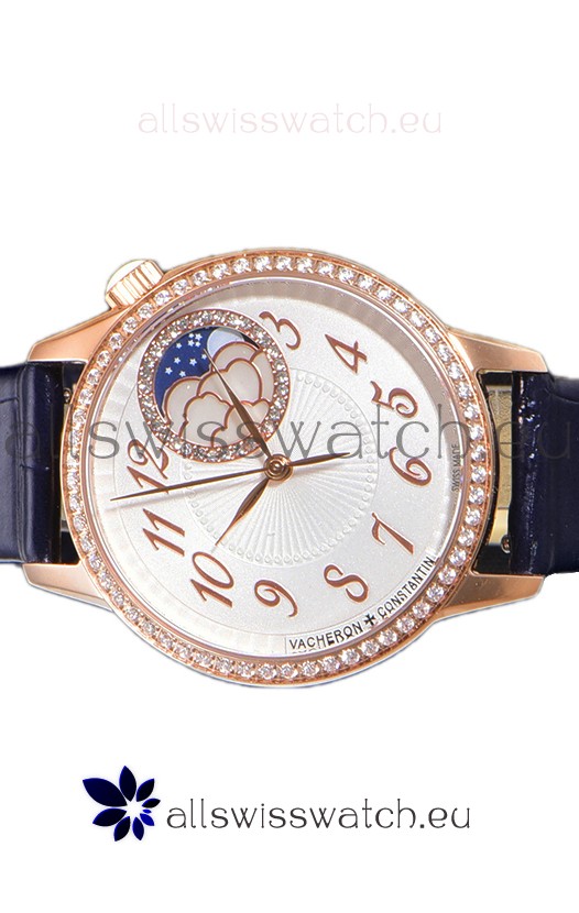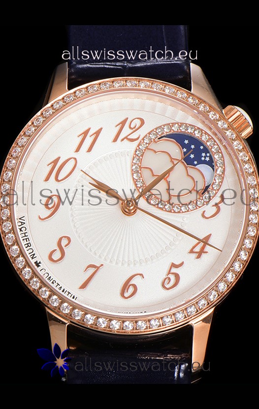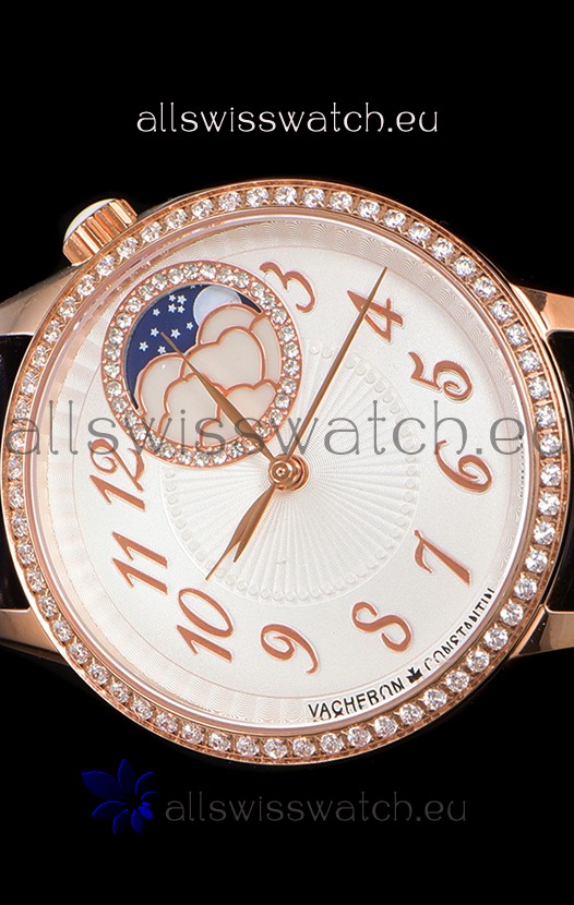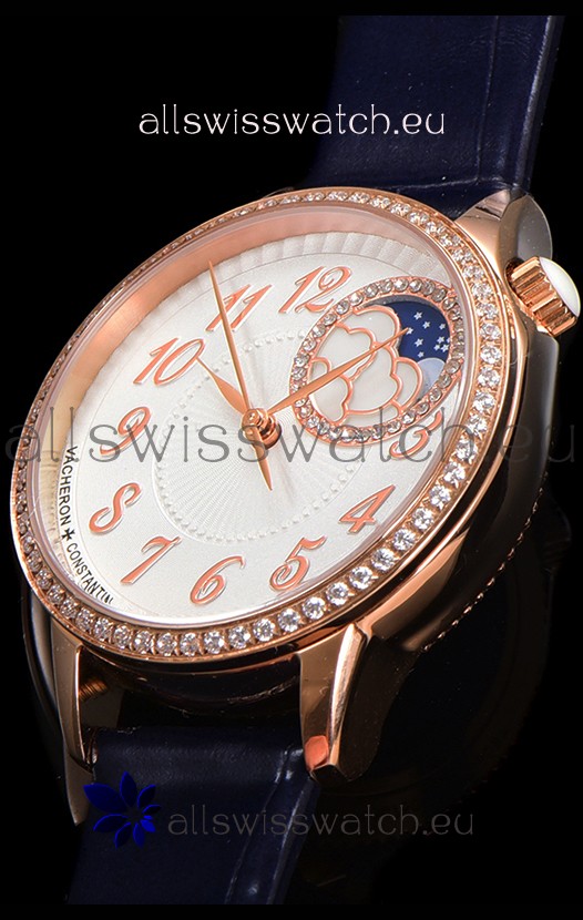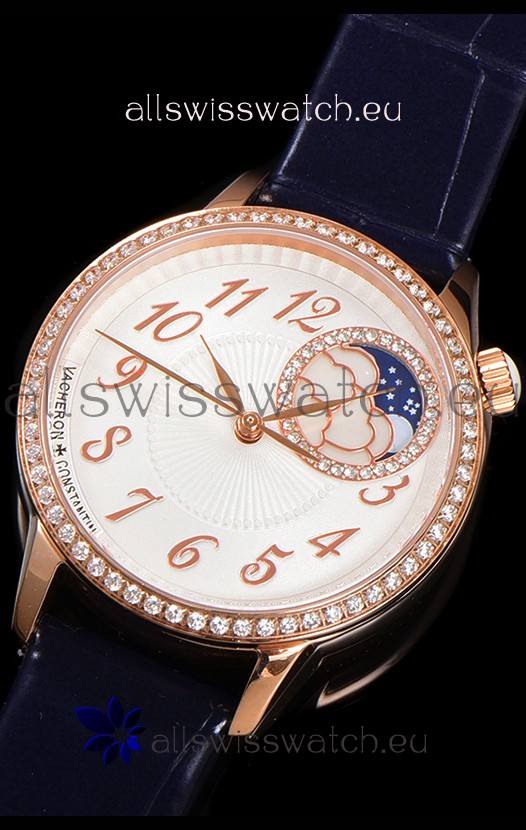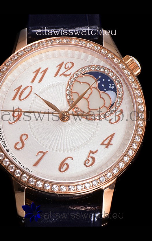 Vacheron Constantin Egerie Muse Moonphase Rose Gold Casing in White Dial Swiss Replica