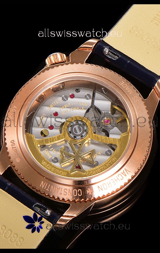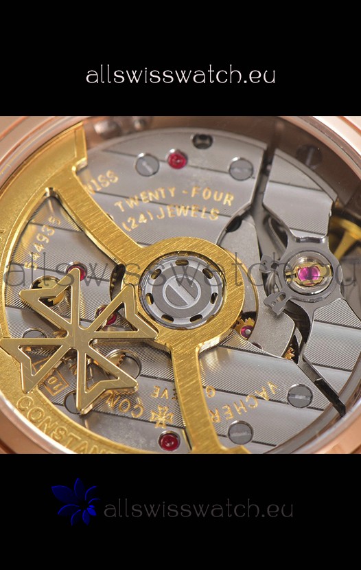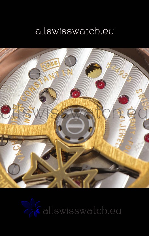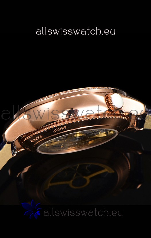 18K Rose Gold Plating on 904L Solid Stainless Steel Casing complete with Vacheron Constantin Markings and Engravings. High Quality Diamonds Bezel