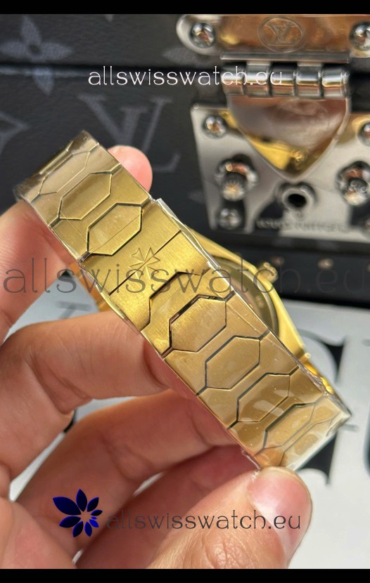 18K Yellow Gold Plating on 904L Stainless Steel Strap with Folding Clasps complete with all Markings and Engravings as per the originals