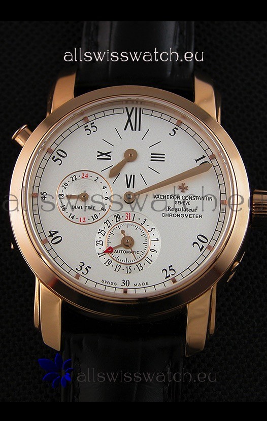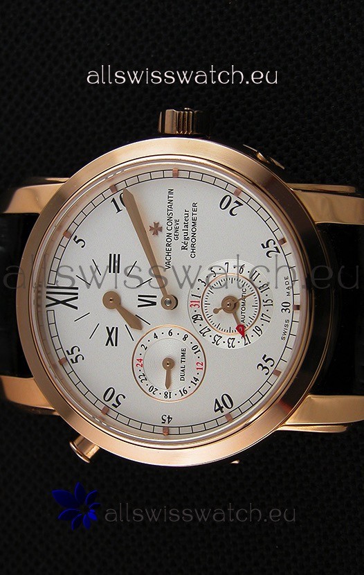 Vacheron Constantin Malte Dual Time Regulator Pink Gold Swiss Replica Watch