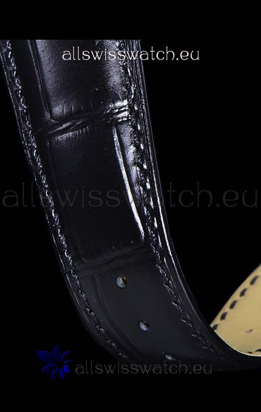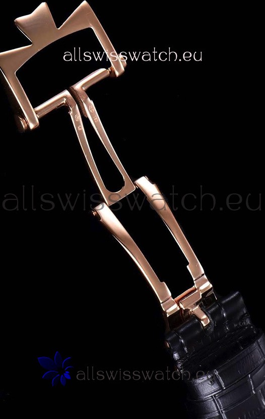Genuine Black Leather Strap with 18K Rose Gold Plated Clasps complete with Vacheron Constantin Markings and Engravings