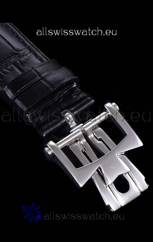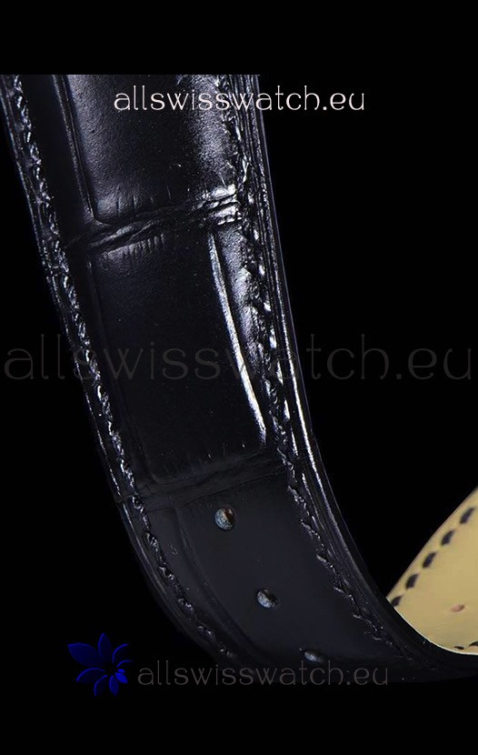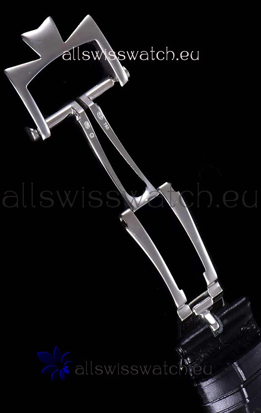 Genuine Black Leather Strap with Stainless Steel Clasps complete with Vacheron Constantin Markings and Engravings