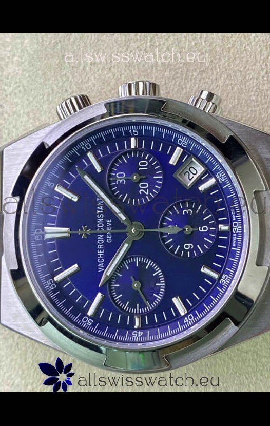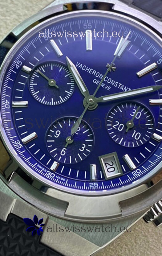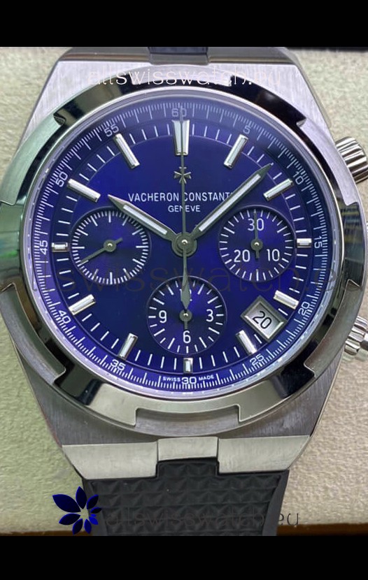 Vacheron Constantin Overseas Chronograph 904L Steel Blue Dial Swiss Replica Watch - Rubber Strap