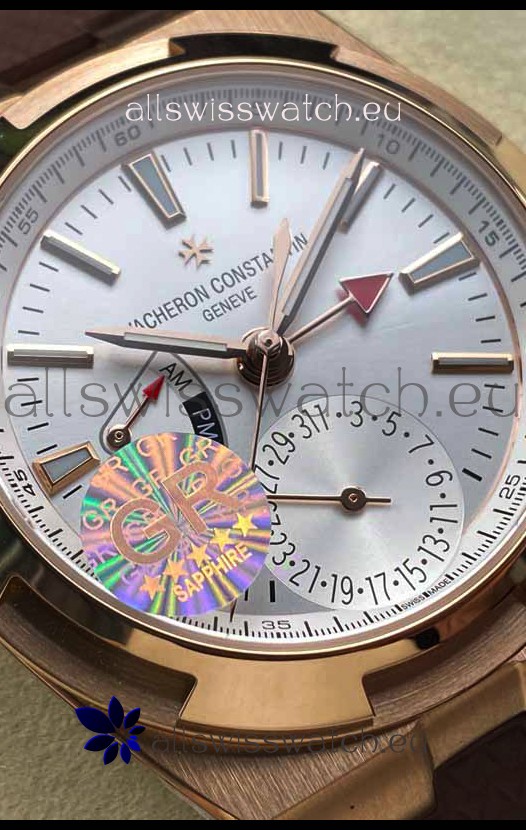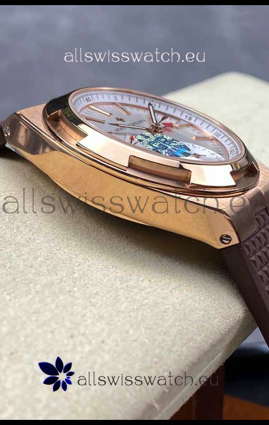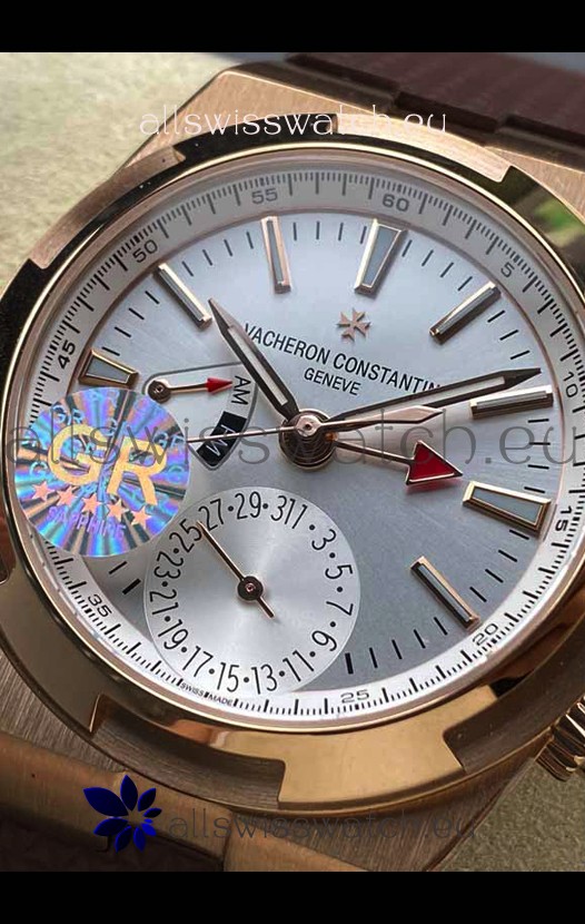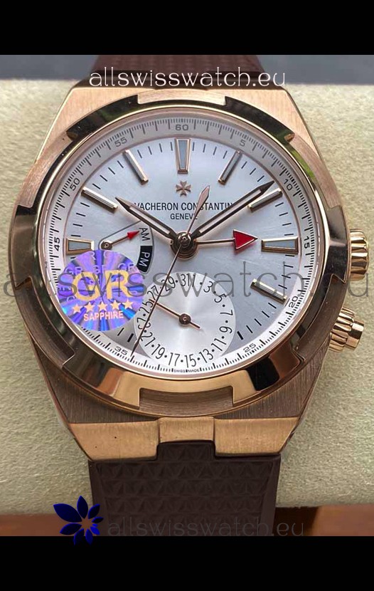 Vacheron Constantin Overseas Dual Time Rose Gold 1:1 Mirror Swiss Replica Watch in Steel Dial