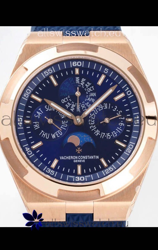 Vacheron Constantin Overseas Perpetual Calendar Ultra-Thin Blue Dial Rose Gold Casing Replica
