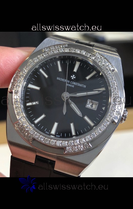 Vacheron Constantin Overseas Stainless Steel 33MM Swiss Quartz Replica Watch Black Dial