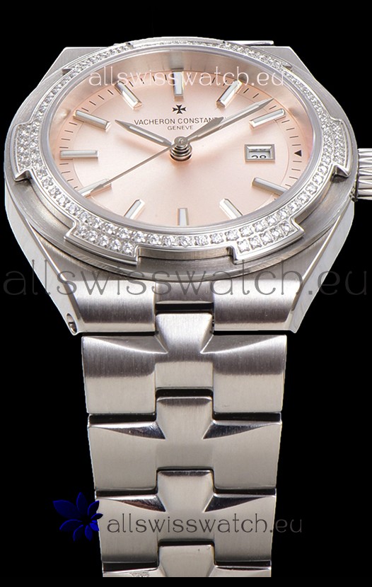 Vacheron Constantin Overseas Steel Casing Pink Dial 35MM Swiss Replica Watch