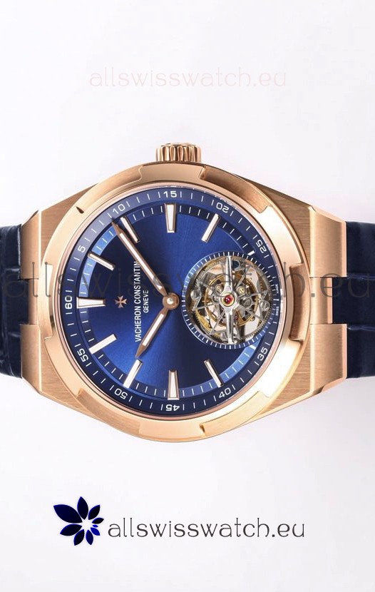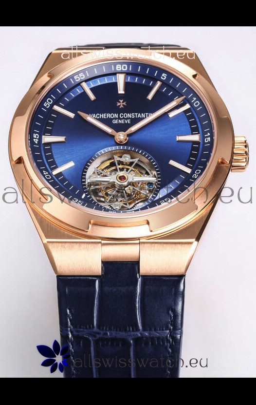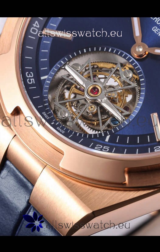 You're reviewing: Vacheron Constantin Overseas Tourbillon Rose Gold in Blue Dial Leather Strap 1:1 Mirror Replica