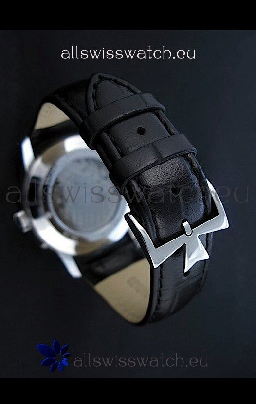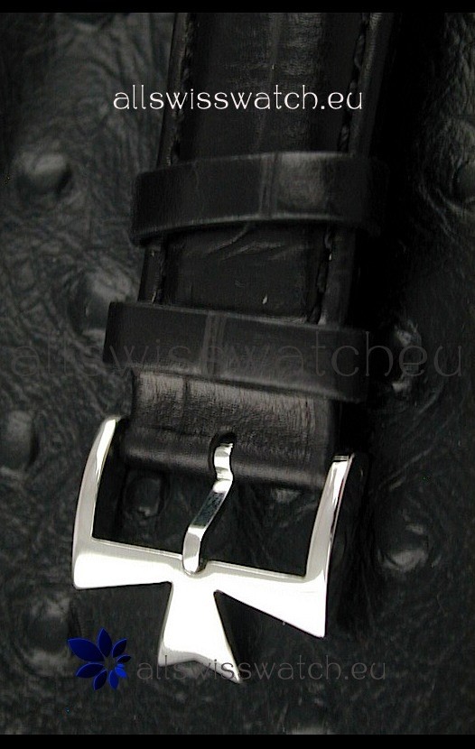 Strap: Genuine Black Leather Strap with Tang Buckle